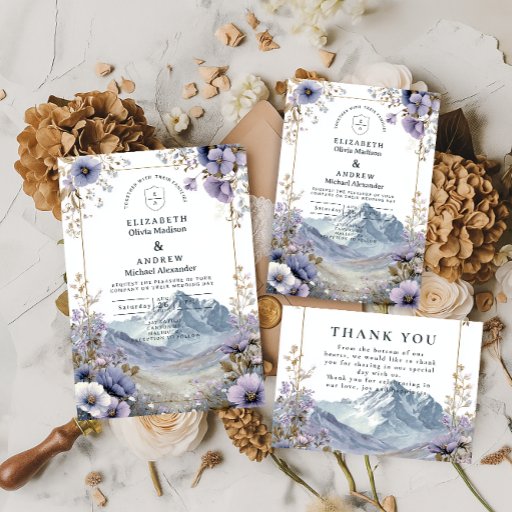 Soft Wildflower Mountain Wedding Invitation