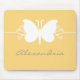 Sweet and simple Butterfly Swirls Customisable Mousepad featuring a pretty butterfly silhouette and a delicately elegant swirl border. This lovely mousepad would make a nice accent to any workspace when customised with your name or other personalised text. Simply add your own text in the spaces provided or click on the "Customise It" button to change fonts, text colours or add/remove text.
