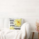 Soft Yellow Rose Black and White Stripes Cushion