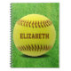 Softball Custom Ball Notebook yellow ball with brown text you can personalise with your own name. Perfect gift to softball player