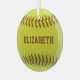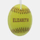 Softball Custom Ball Ornament yellow ball with brown text you can personalise with your own name. Perfect gift to softball player