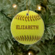 Softball Custom Ball Ornament yellow ball with brown text you can personalise with your own name. Perfect gift to softball player
