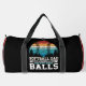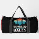 This humourous design features a softball with a retro sunset and pine trees, accompanied by the bold text "SOFTBALL DAD LIKE A BASEBALL DAD BUT WITH BIGGER BALLS." It's a witty and playful statement for fathers who love softball, celebrating the sport with a cheeky, memorable punchline.
