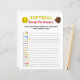 Softball Emoji Pictionary Game's answer key: 1. Ballpark, 2. Runner, 3. Change-up, 4. Curveball, 5. Batter, 6. Bullpen, 7. Outfield, 8. Foul Ball, 9. Softball Diamond, 10. Home Run, 11. Dead Ball, 12. Backnet, 13. Fair Ball, 14. Fielder, 15. Backstop, 16. Fly Ball.
