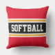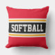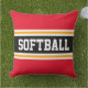 SOFTBALL Fun Bright Red Black Athletic Stripes Cushion