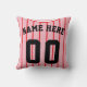 Easy to edit baseball / softball custom jersey design throw pillow. The pinstripes and edging colour is red, background colour can be changed - just click on 'CUSTOMIZE'. Just use the boxes to the right of the image to insert your own choice of name and number. Many more colours and designs available in my store. Perfect gift for any baseball or softball player or fan!