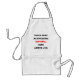 Cute, heavy duty apron with wide front pocket. Light to wear and easy slip on and off. Shorter length perfect for my 5 ft frame. I love it! Wording and print looks good with clear borders. Stitching is good, nicely finished.