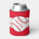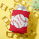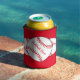 This can cooler features red and white softballs surrounded by a red background. The text reads: Softball Mum. Easily customise the text for a special sports fan or remove entirely. Great for Mother's Day or any time of year!