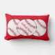 This lumbar pillow features red and white softballs surrounded by a red background. More softballs are on the back. The text reads: Softball Mum. Easily customise the text for a special sports fan or remove entirely. Great for Mother's Day or any time of year.