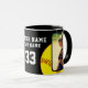 Softball Player Name Number Team 2 Photos Coffee Mug. A perfect gift for the softball player in your life - a personalised mug that showcases their love for the game! This mug features two photos of the player in action on the softball field, giving them a constant reminder of the thrill of the game. The mug also includes the player's name, number, and team name, making it a truly personalised gift that they will cherish for years to come. This mug will bring a smile to their face and keep them motivated to keep playing their best.