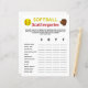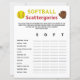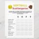 Softball Scattergories Game is a party game. You have 2 mins to list words that begin with each letter of the word "SOFT" for each category below. Points are awarded when players are the only one with that answer! Most points wins!