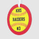 Create your own customised Christmas ornaments for fastpitch softball players and teams! Just click to personalise the template, and type your own softball team name, school letters and player jersey number in the custom text boxes. You can even customise the background colours around the outside of the softball, which are currently set on red on the front and green on the back. These make a wonderful Christmas gift for softball players, especially high school or college softball seniors!