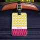 This patterned luggage tag has a softball theme and has background colours of deep and pale pink and white. Softballs and softball bats are on the front, and more softballs decorate the back. You can personalise with a name or other text on the front, and on the back add your preferred message and contact details.