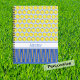 Softballs create a bright polka dot pattern on a blue background on the front and back of this notebook. On the front, softball bats are also used to create a further pattern, and there is a white band for you to personalise with a name or other text.