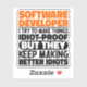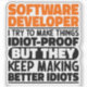 Funny Software Developer Sayings "Software Developer I Try To Make Things Idiot Proof But They Keep Making Better Idiots". Grab this Funny Software Developer design as a funny gifts for an awesome mum, dad or friend.