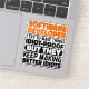 To be honest, I wasn't expecting much, as I am using these stickers as a decal for my ute doors. That being said, it is extremely affordable, and to get these done on another website I saw, they wanted to charge me over $100 for smaller. These stickers are amazing quality and well worth the money. By far exceeded my expectations and will do the job nicely. The stick great. The only thing I would change is instead of a cut out of each part, if they'd have the backing, sticker, then clear over the top for easy application because the moment I tore off the front to apply the sticker, the lettering stayed on the backing paper causing me to have to use the front as a boarder/stencil and carefully apply the lettering inside the lines. But either way, I'm very happy. Thank you. The printing was awesome. Top quality and no issues whatsoever. As I stated in the "what I thought about this product" section, The only thing I would change is instead of a cut out of each part, if they'd have the backing paper, sticker, then clear over the top that the front of the sticker sticks to for easy application in one go. Because the moment I tore off the front to apply the sticker, the lettering stayed on the backing paper causing me to have to use the front as a boarder/stencil and carefully apply the lettering inside the lines