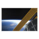 Solar array panels on the International Space Station backdropped against Earth's horizon featured with STS-126.