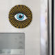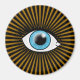 illustration of blue eye with dark golden sun rays. mythology one aspect of the Sun is depicted as an eye against a background of solar rays beaming all around.