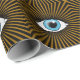 illustration of blue eye with dark golden sun rays. mythology one aspect of the Sun is depicted as an eye against a background of solar rays beaming all around.
