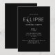 This modern invitation is a sophisticated and stylish design for an eclipse viewing party for the 2024 total solar eclipse on April 8th. The design features a sleek, black and white colour scheme with a clever play on the word "Eclipse," incorporating a graphic that symbolises the celestial event. The crisp white lettering stands out against the black background, inviting guests to join the festivities. This invitation is perfect for those looking to host an intimate gathering of friends and family to witness and celebrate the rare and stunning spectacle of a total solar eclipse. The minimalist design communicates all necessary details clearly and elegantly. Available as a digital download or printed invitations.