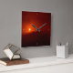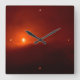 An orange red image of the sky with clouds shows the sun in halfway eclipse with earlier phases of the suns eclipse used to mark the various main clock numerals, 12, 3, 6, and 9.