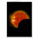The dark shadow of the moon crosses in front of the sun during a solar eclipse captured in space and enhanced in this image.