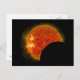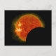 The dark shadow of the moon crosses in front of the sun during a solar eclipse captured in space and enhanced in this image.