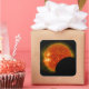 The dark shadow of the moon crosses in front of the sun during a solar eclipse captured in space and enhanced in this image.