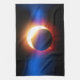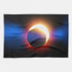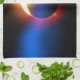 A solar eclipse (the moon covering the sun), with the typical "lens-flare" effect in blue.