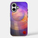 This case has an artistic abstract cosmic design with geometric shapes and beautiful, transparent / watercolor like colours (purple, yellow, orange). This product can be customised by adding text.