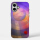 This case has an artistic abstract cosmic design with geometric shapes and beautiful, transparent / watercolor like colours (purple, yellow, orange). This product can be customised by adding text.