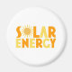 Fun Solar Energy design has pretty sun graphic and Solar Energy slogan in yellow and orange.