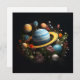 The colors of the planets blend seamlessly with the vibrant colors of the flowers to evoke a sense of harmony and awe.