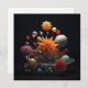 The colors of the planets blend seamlessly with the vibrant colors of the flowers to evoke a sense of harmony and awe.