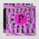 SOLAR MONOGRAM,bright pink fuchsia black white Invitation