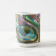 A high-gloss porcelain effect enhances the artwork, giving key areas a puffed, domed surface and smooth, glassy reflections. The layered colors, soft highlights and subtle shadows create real 3D depth and relief, as if the artwork were a sculpted opal wrapped around your cup. It has the presence of a small abstract figurine in 3D, not just a flat print.