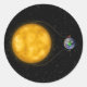 The Earth getting its battery recharged by the Sun using jumper cables to connect to the Earths poles, red on top, black on bottom.