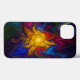 A slightly psychedelic, wavy, swirling, multi-coloured, fractal resembling electromagnetic emissions emanating from the sun. The image is superimposed on a starry background. Add your own text.