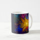 A slightly psychedelic, wavy, swirling, multi-coloured, fractal resembling electromagnetic emissions emanating from the sun. The image is superimposed on a starry background. Add your own text.