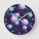 Solar System Glow | Cosmic Blue Purple Pink Planet Round Clock