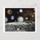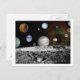 Our out of this world postcard shows a montage of solar system images taken by the Voyager spacecraft. The planets and four of Jupiter's moons are set against a false-colour Rosette Nebula with Earth's moon in the foreground. The postcard would be perfect for space buffs, and fans of space exploration. Image credit: NASA