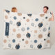 Love space? This fleece blanket adds a great custom touch to your home bedroom or nursery. The pattern has drawings of planets Mercury, Venus, Earth, Mars, Jupiter, Saturn, Uranus, and Neptune, as well as a drawing of the moon. The drawings are sketched in boho style and the colors are in shades of brown and blue. Blanket may be personalized with a name or other text.