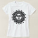 A stark, mythic sun-face radiates from the chest in bold black linework, its braided corona and flame‑tipped rays forming a ritual emblem of light, power, and ancient symbolism. This design carries the haunted, hand‑inked character of a carved talisman—perfect for those who favour occult geometry, pagan resonance, and stark monochrome statement art. Printed on a clean white tee, the sigil stands out with ceremonial clarity, making it ideal for everyday wear, festivals, or anyone who walks with the sun at their back