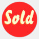 Retail Sold Stickers. Red retail round sticker sheet with fully customisable text "Sold". These retail sold stickers are fully customisable, change and add your texts & images! Great sticker for your shop, garage sale, real estate or other businesses.