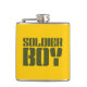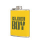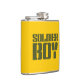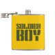 The flask itself is fine. It’s a cheap flask, obviously bought in bulk, however am prepared to overlook that. Given that it is a personalized item, I would have liked to have seen gift boxing instead of the generic packaging. Terrible printing, and/or quality. It’s a cheap, tacky vinyl. It is not cut straight and is also applied in a way that it is overhanging the bottom, causing the glue to catch on items and it will eventually roll and tear, damaging the wrap.