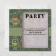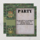 Cool soldier camouflage party invitation with a natural green camouflage pattern and military fabric. Some military details like emblem and bullets. A great invitation for a soldier or army themed boy party. Or army retirement party or military mission welcome home party.