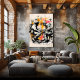 Street art poster of two soldiers playing chess, symbolising the game of power and the absurdity of war. A bold stencil artwork with graffiti textures and vivid splashes of colour, ideal for modern walls and urban art collections.