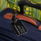 Luggage tag with name and address on a solid black background colour. Personalise with your name and address information using the easy templates. Font colour, font style, and font size are customisable.