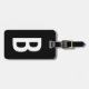 Easily change the monogram initial on the front and name and address on the back of the black luggage tag.