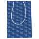 Blue and white promotional holiday gift bag is a finishing touch to your company Christmas gifts. Perfect for clients, customers, and employees. Easily upload your white company logo over the solid blue and adjust as desired. While the colour is changeable, it is versatile for royal blue, navy blue, or blue-grey corporate branding.